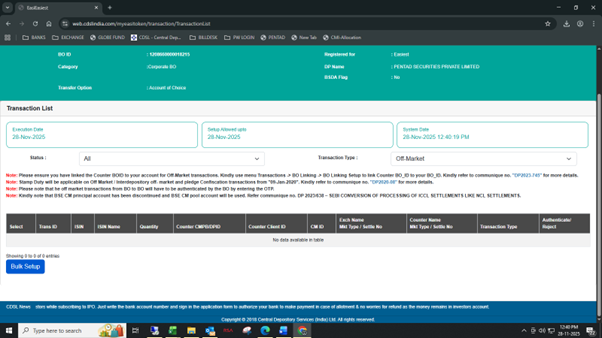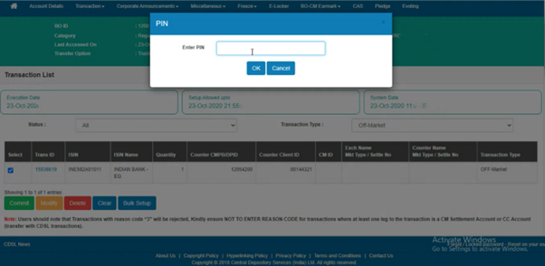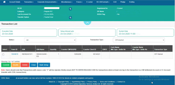 This is now sent to the Depository Participant (DP) for confirmation. The request is approved on confirmation, and the transfer will be done.